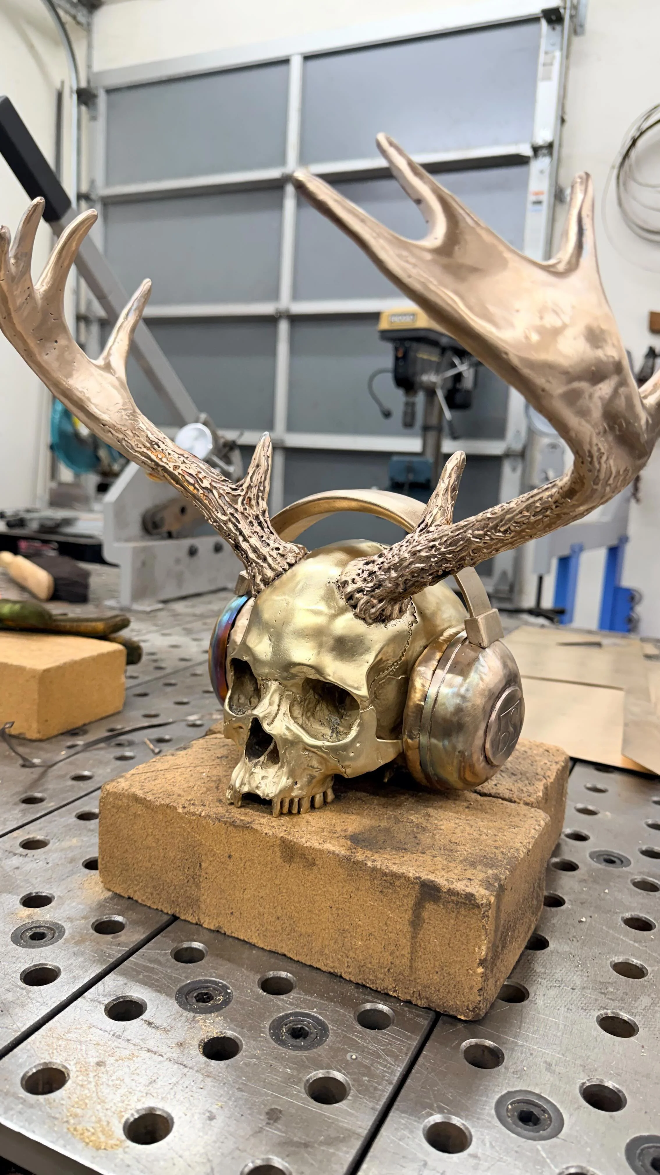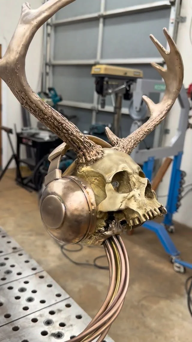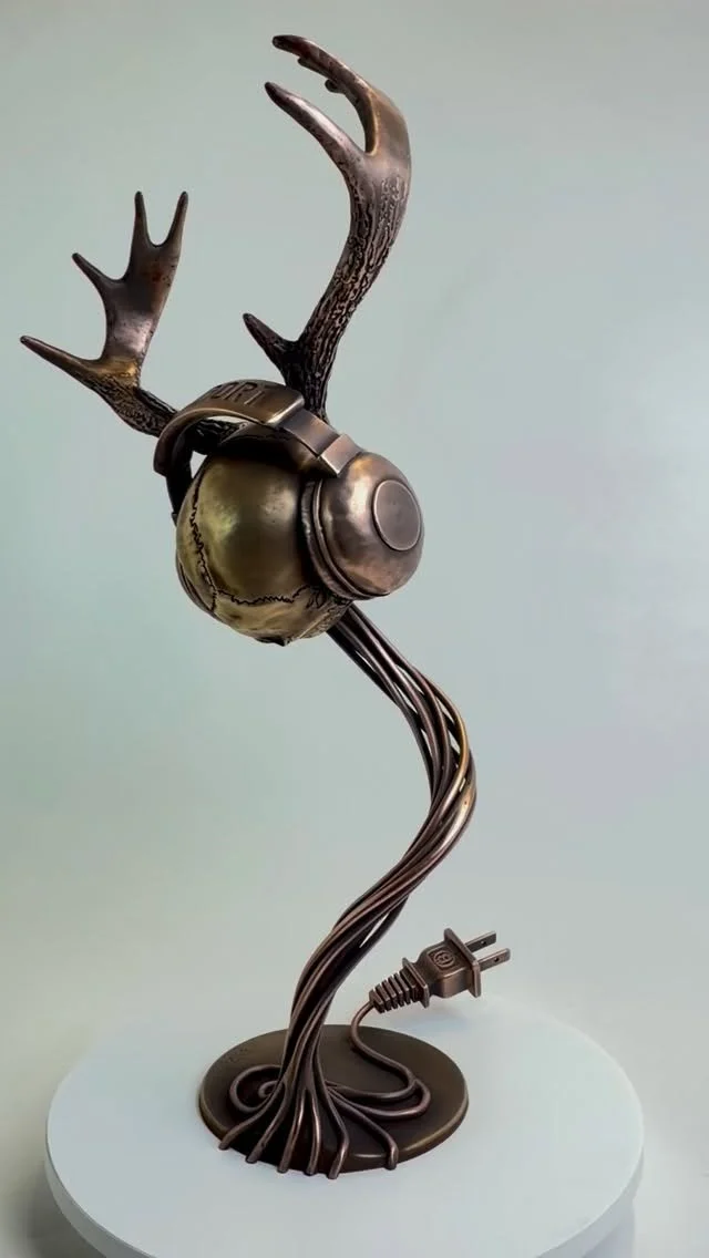 The fourth addition to Brandon Stieg’s Diver Boy series, Solace is a one-of-a-kind wall sculpture forged, formed, and fabricated entirely from raw steel, bronze, and copper. Built through hours of precise metal manipulation and TIG brazing, this is not a casting—each detail reflects Stieg’s deep craftsmanship and dedication to process. The piece is designed to be illuminated from within, casting an intricate pattern of light through the hand-carved surface of the urchin shell. Approximately 18” wide by 28” tall, with discreet mounting brackets for easy installation.